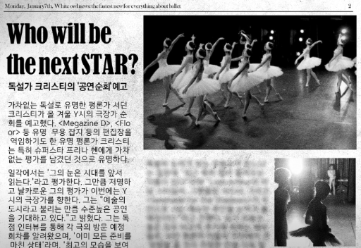 아, 최근엔 공연 준비로 정신이 없어서요… 신문 볼 겨를도 없었네요.